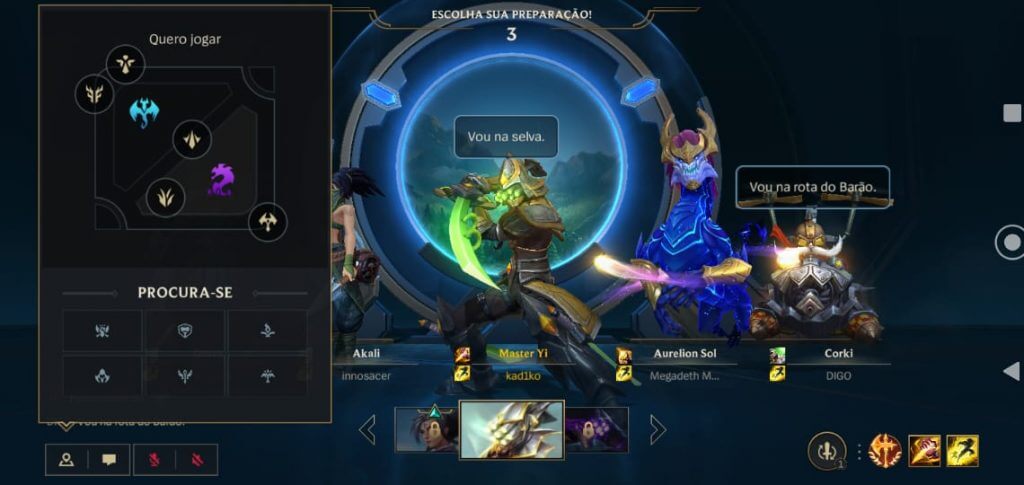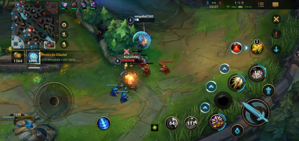 De acordo com a Riot e o site oficial de Wild Rift, basta ter um Android 5, 2GB de RAM, Quad-Core 1,5Ghz e GPU Mali-T860 para rodar o game. Liso? Pouco provável, mas roda. Passei os últimos dias jogando partidas no meu Moto G8 Plus, um dos melhores celulares medianos do mercado e quase não tive problemas. Quase. Tanto no modo qualidade (30 fps) quanto performance (60 fps) eu tive alguma queda brusca de fps nas raras lutas mais fervorosas – com muita magia e efeitos especiais.