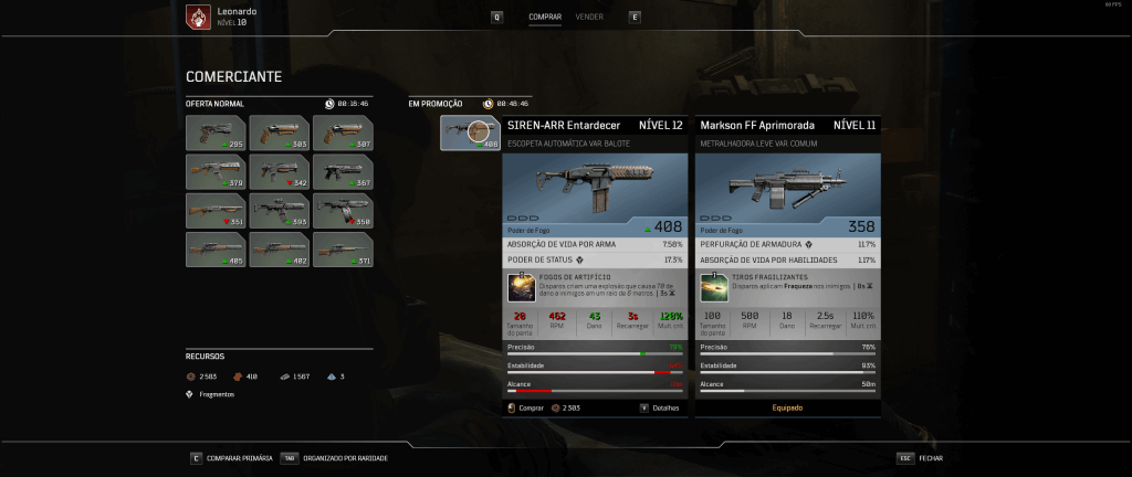 E por falar em builds, temos as armas e equipamentos. Quanto maior a raridade, melhor será o poder e seus status. Temos melhoras de poderes específicos, melhoras geral como poder de anomalia, ataque, defesa, vida, absorção de vida e mais.