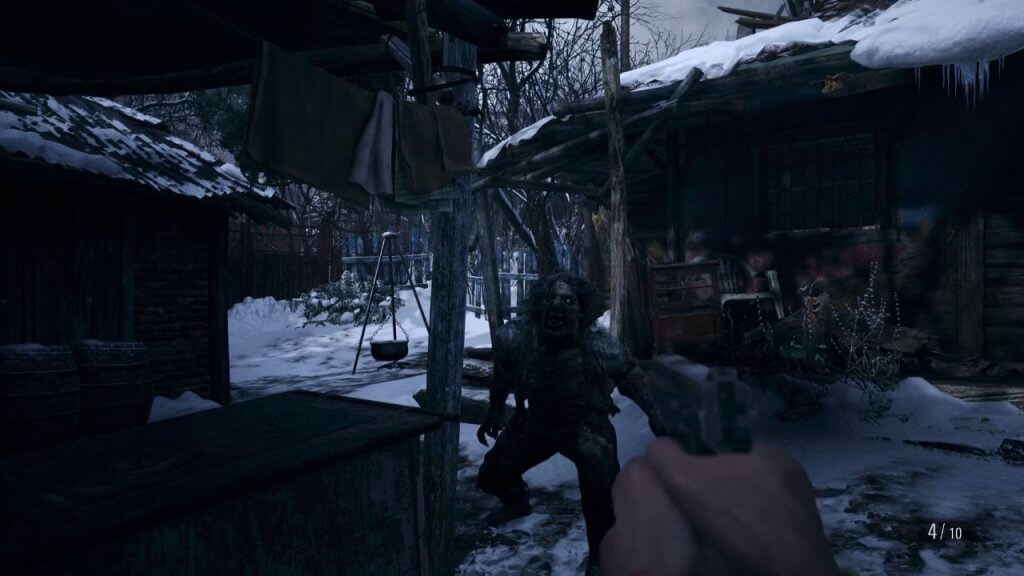 Ao invés de termos melhorias no personagem com a injeções presentes em Resident Evil 7, aqui devemos caçar animais e usar suas carnes para fazer alimentos. Essas comidas trazem benefícios permanentes que vão desde o acréscimo de vida até o aumento de velocidade de movimento. Essa mecânica funciona muito bem para o andamento do jogo e te proporciona uma vantagem a mais para os desafios seguintes. Vale lembrar que algumas carnes são mais raras, então fique atento e explore bastante os locais da Vila!