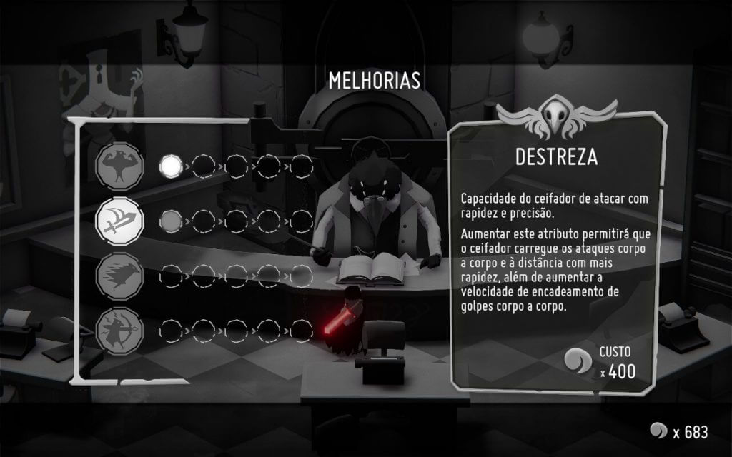 Inclusive, o jogo permite que você aumente os seus status para assim passar menores perrengues no combate, porém, está longe de ser um esquema igual de RPG. Aqui é mais simples, onde teremos status que dá maior força, velocidade de esquiva, velocidade de ataque e velocidade em utilizar feitiços.