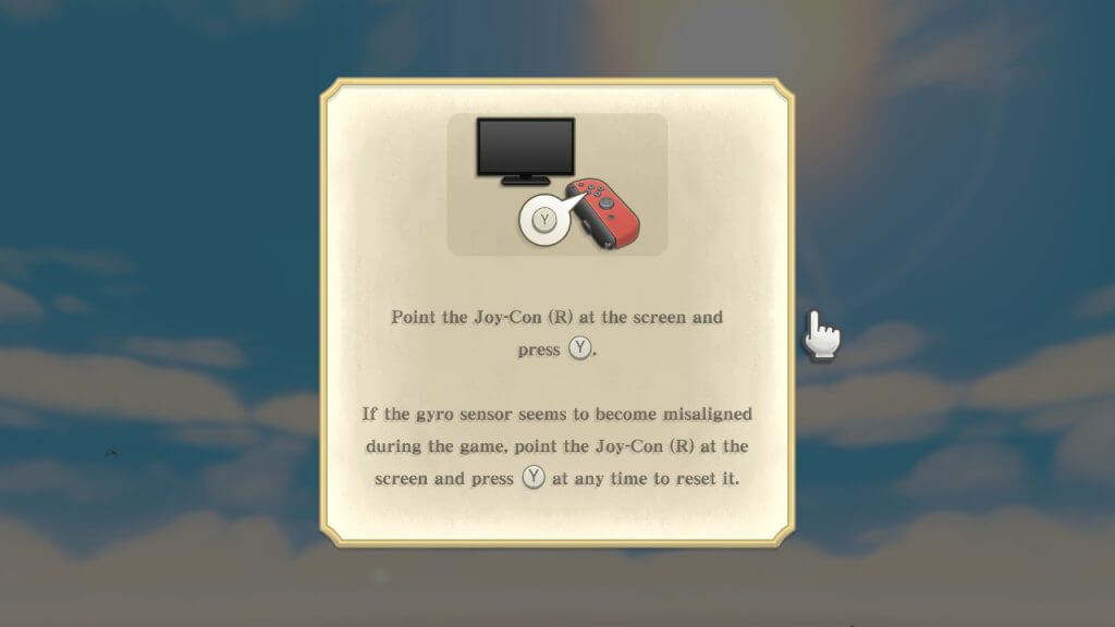 Ao iniciar o game, o jogador pode selecionar escolher jogar utilizando somente o controle (Button Only) onde todos os movimentos da espada foram mapeados no analógico direito ou com os movimentos dos Joy-Cons. A parte dos Joy-Cons funcionam de maneira idêntica do Wii, ao mover o Joy-Con da direita para cima, o Link, também moverá a espada. Contudo, diferente da versão do Wii é preciso centralizar mais vezes na tela o controle. (Explicarei um pouco sobre isso na parte onde falo da parte técnica)