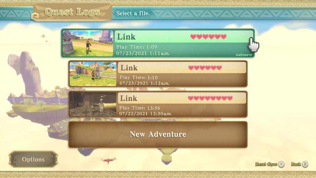 Similarmente como Twilight Princess HD, Skyward Sword HD também ganhou uma função de autosave. Mesmo não sendo muito necessário, visto que o game possui estatuas de saves em todo canto, contudo é uma adição muito bem-vinda.