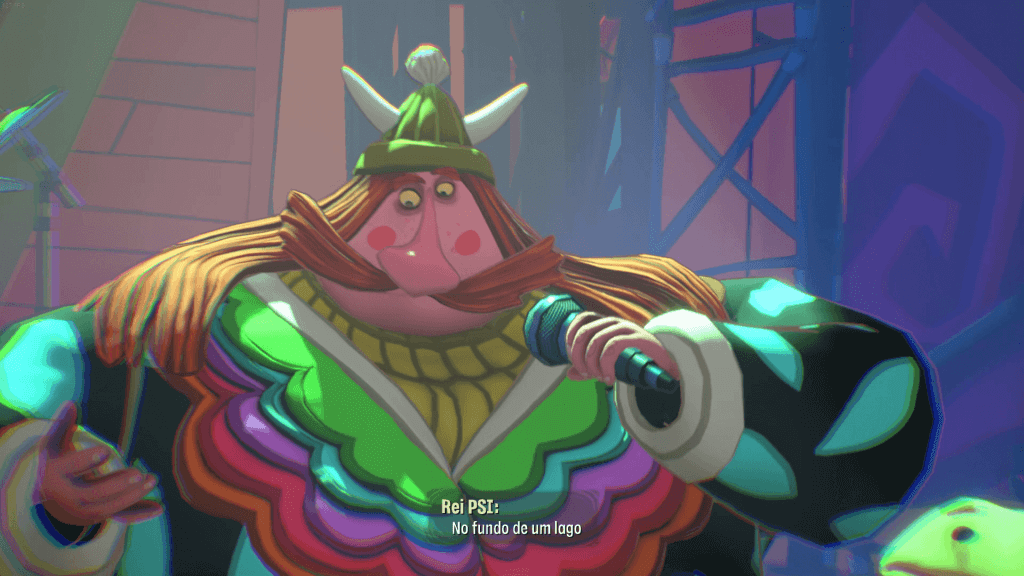 Tudo isso acontece em meio a belos gráficos, que cumprem bem a proposta cartunesca e estilizada do jogo. Psychonauts 2 segue a linha do jogo anterior, com modelos relativamente simples, mas não ache que o jogo seja feio por isso. Novamente, a criatividade infinita do time da Double Fine proporcionou cenários consideravelmente variados e detalhados, com efeitos e partículas por todos os lados. Eu sou um daqueles que não achava Psychonauts 2 bonito julgando pelos trailers, mas felizmente, quebrei a cara e percebi que o jogo tem momentos lindos e memoráveis.