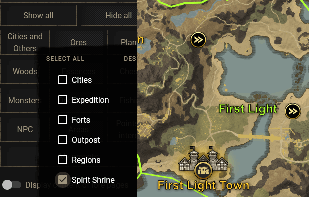 Por outro lado, é importante você desvendar onde estão os Santuários de Viagem Rápida (Spirit Shrines). Como estamos focando em evoluir na pressa, eu não indico perder muito tempo procurando por eles dentro do jogo, contudo alguns vão acabar se revelando conforme você conclui certas missões próximas a eles. Ou seja, você vai acabar querendo ativar os que estão perto do seu caminho para facilitar o deslocamento e não perder muito tempo correndo. Para isso, sugiro usar o mapa interativo feito por fãs do site https://www.newworld-map.com.
