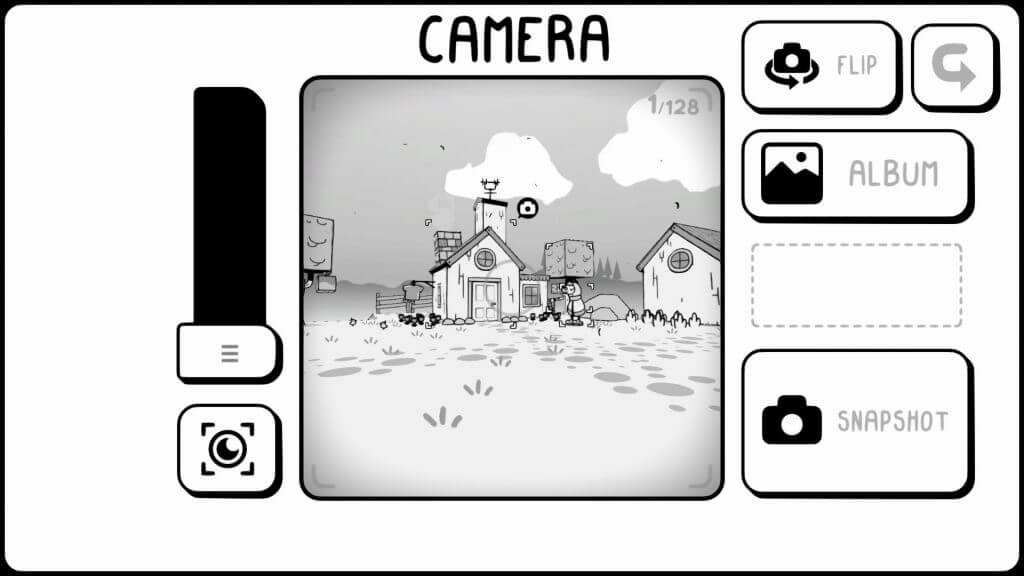 Tá, mas já falei um bocado sobre o visual. E o jogo? Pois bem, vamos lá! Logo no início da aventura, você recebe uma câmera fotográfica analógica de sua vó e é instigado a sair em uma aventura para presenciar o fenômeno TOEM. Em posse da câmera, você ganha um novo e importante elemento de jogabilidade. Ao acionar seu equipamento, a câmera muda a visão para primeira pessoa e te permite a observar novos elementos e detalhes.