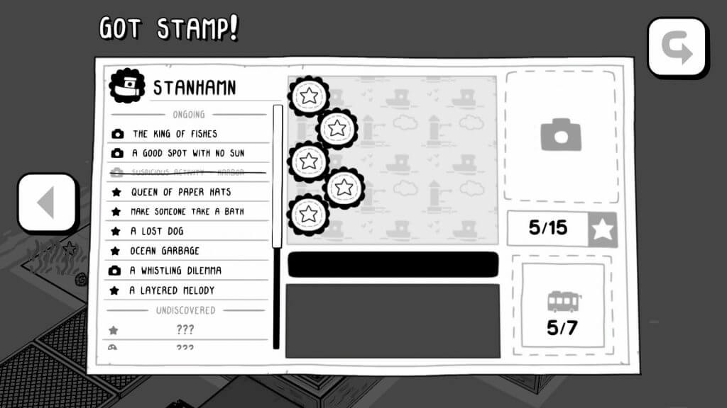 A partir daí, toda a mecânica de TOEM se resume a encontrar personagens pelo caminho, ouvir seus problemas e ajudá-las. A maior parte destas quests serão resolvidas única e exclusivamente com o uso da sua câmera. Seja fotografar um objeto perdido para mostrar ao dono onde está até fotografar um desfile de moda para um editor de jornal carrancudo, sua câmera será protagonista da aventura. Cada pessoa que você ajudar carimbará o seu “cartão da comunidade”. Ao chegar a um certo número de carimbos você ganhar um passagem de ônibus grátis que te leva para um novo local. E esse procedimento será repetido até o final do game, que, por sinal, pode ser terminado em cerca de 2 horas cumprindo o número mínimo de missões.