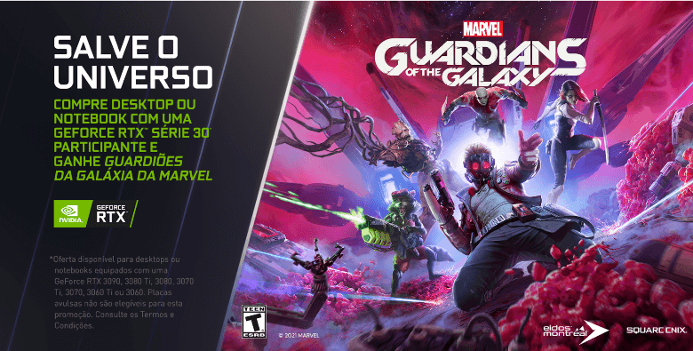 A NVIDIA anunciou que, até 28 de outubro de 2021, clientes que adquirirem dos fabricantes autorizados um desktop ou notebook equipado com placas GeForce RTX 3060 ou acima a partir desta terça-feira (05), vão ganhar o título de ação e aventura Marvel’s Guardians of the Galaxy. Veja aqui as regras completas da promoção e produtos participantes.