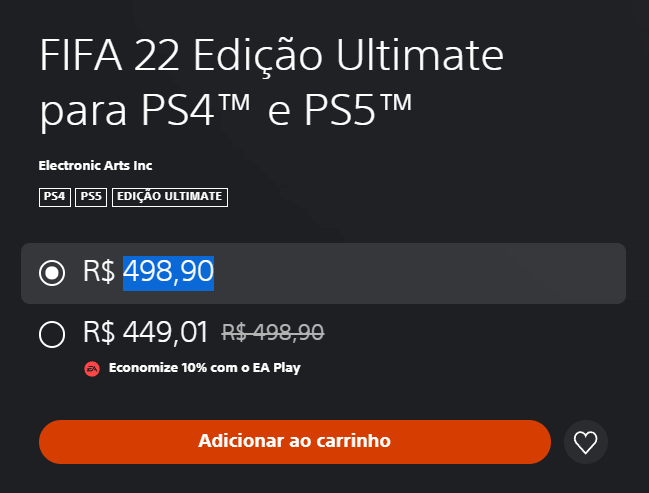FIFA 21 desembarcou próximo ao lançamento da nova geração de consoles. Obviamente isso limitou seu avanço, mas trouxe um respeitável modo 4K60 como opção na época, sem custo extra. Já FIFA 22 já foi pensado em grande parte, não totalmente porque ainda temos PS4 e Xbox One suportados, para a nova geração. Isso reflete também as versões vendidas separadamente ou a versão Ultimate que suporta os dois. Esta versão custa ofensivos R$498,90 na PSN.