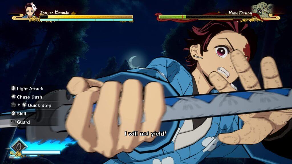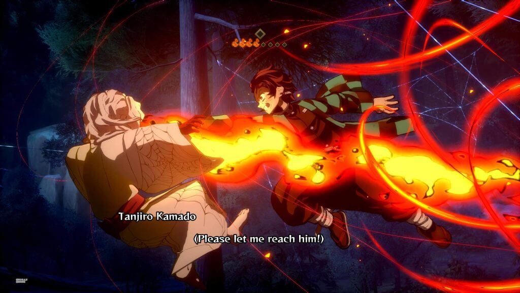 A história do jogo começa depois desse acontecimento, quando Tanjiro já está treinando para poder virar um caçador de demônios. Dessa forma, o tutorial do game se passa durante essa árdua sessão de treinamento. A história é dividida em “episódios”, onde cada um ocupa arcos do anime. O episódio 1 é a parte inicial onde mostra o treinamento de Tanjiro, enquanto o episódio 2 temos a seleção para ser caçador de demônios e assim por diante até chegarmos no oitavo episódio que adapta o arco Mugen Train que foi lançado em filme e agora está ganhando uma segunda adaptação em anime como parte da nova temporada de Kimetsu no Yaiba.