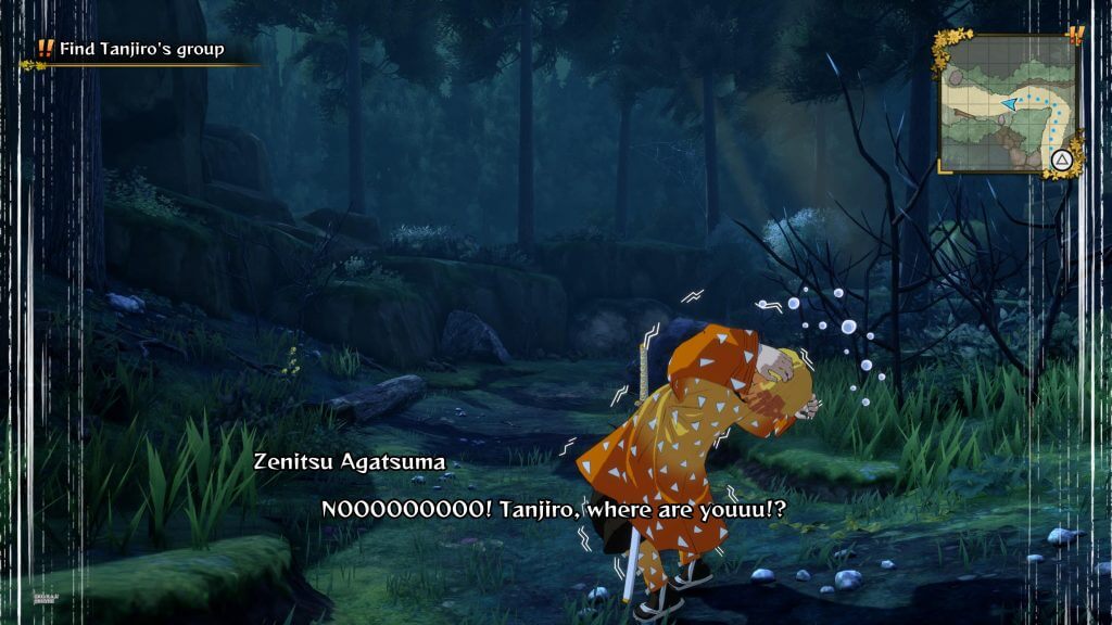 Há raros os casos que essas partes são proveitosas como os momentos que usamos o escandaloso do Zenitsu. Ver ele morrendo de medo pelas coisas que aparecem é engraçado e a animação se mostra bastante divertida. Fora isso, realmente acho desnecessária essa parte do jogo, fazendo com que quebra até mesmo o ritmo, uma vez que poderiam fazer cutscenes para revelar o que aconteceu em meio do caminho até a batalha.