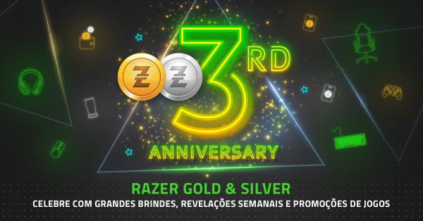 Mais informações sobre a campanha do terceiro aniversário do Razer Gold, inclusive sobre os prêmios disponíveis a cada semana, estão no site do Razer Gold.