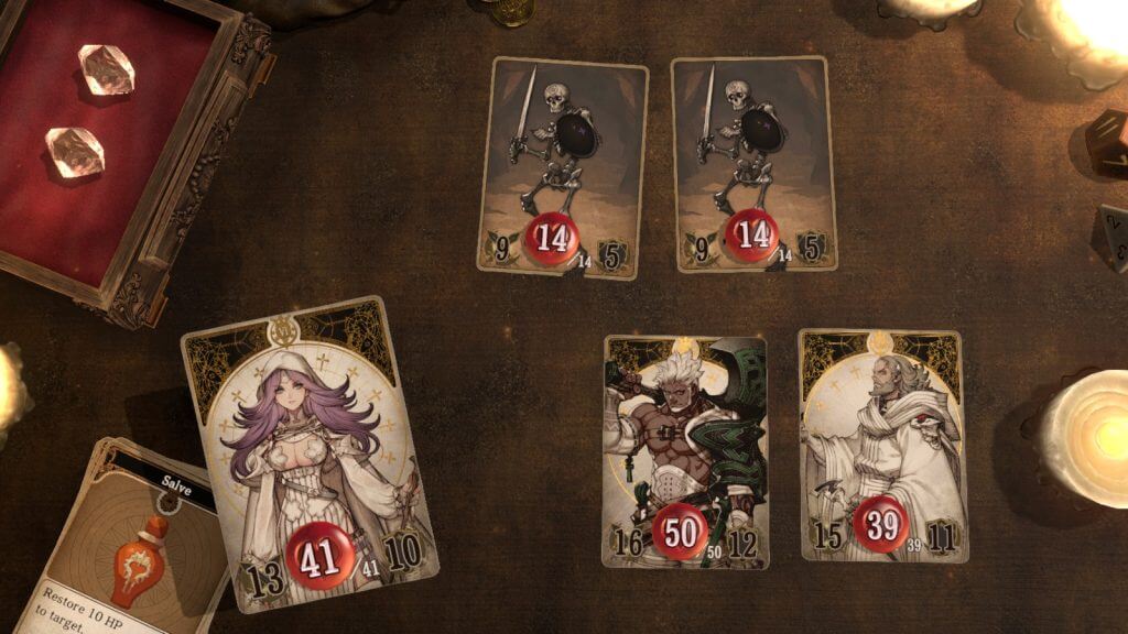 Por mais que a história aparenta ser clichê, principalmente para os entusiastas de RPGs medievais, os jogadores terão bons momentos com personagens cativantes e batalhas épicas. Além disso, a história é moldada com base nas suas escolhas, onde diversos detalhes podem sofrer alterações de acordo com o que você faça. Desse modo, temos uma vibe mais imersiva de estarmos num tabuleiro de RPG de cartas.