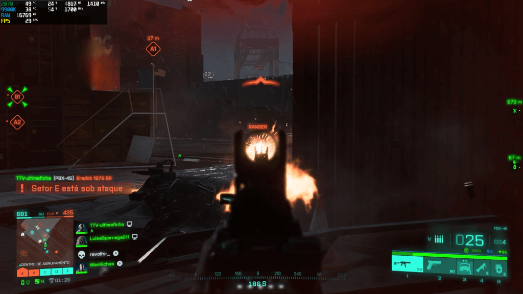 DLSS, que poderia ajudar muito nessa situação caótica, parece nem estar funcionando direito. Independente de ultra performance, auto ou desligado, pouca coisa muda. Jogos com DLSS bem implementado são muito impactados pela tecnologia. BF 2042 não é.