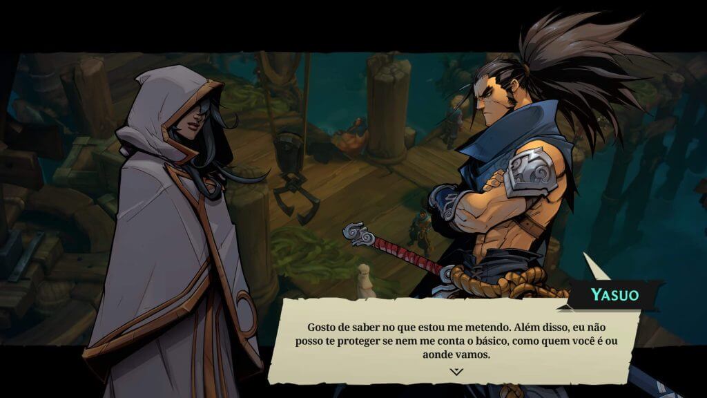 A história é contada por meio de algumas cutscenes que parecem páginas animadas de HQs, mas em outros momentos temos apenas o modelo dos personagens no mapa acompanhados de balões de fala dublados. Falando em dublagem, o jogo se encontra dublado em PT-BR, onde temos o mesmo cast de vozes de League of Legends.