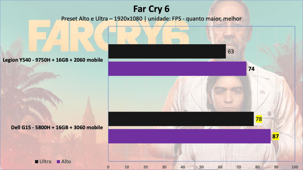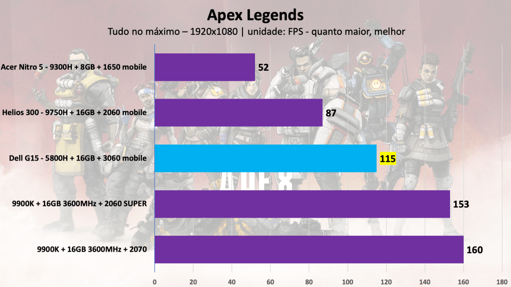 Aproveitamos alguns jogos não tão novos, pois temos algumas outras máquinas com dados guardados, facilitando o comparativo. Já para jogos mais novos, inicialmente, teremos poucas opções para comparação. Mas prometo que, até o fim do ano, um desktop com RTX 2070 e RX 6800 vão aparecer nos gráficos abaixo. Você pode conferir todas as máquinas e configurações usadas nestes comparativos clicando aqui, caso queira saber algumas informações além do que vem resumidas.