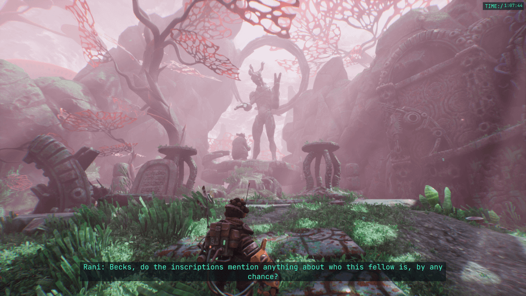 Basicamente a cada nova área do jogo, Rani e Becks ficam em contato falando das novidades e impressões assim como expressando desejos, intenções e preocupações. Esse “bate bola” entre elas é muito bem feito e adiciona um carisma extra a história. Para não entrar em spoilers, elas descobrem que uma antiga civilização já habitou este planeta e vão a fundo neste mistério para descobrir o que está acontecendo.