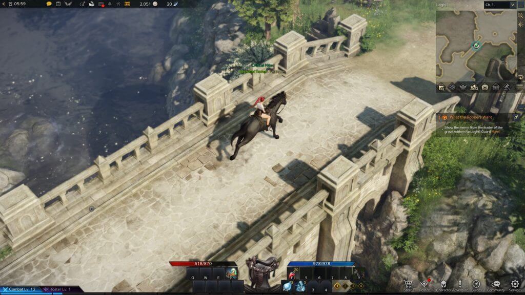 Aliás, falando em opções end-game e história, Lost Ark tem muito, mas MUITO, conteúdo. E muitos deles precisam de tempo para serem desfrutados. Como exemplos rápidos: um sistema de relacionamentos com NPCs onde você aprende e toca músicas para eles/elas, ou opta por dar presentes, usar emotes e fazer até mesmo favores. Há um sistema de animal de estimação (Pets) que te seguem pela aventura. No início é apenas um coelho branco que pega itens, tem inventário próprio e fornece acesso a correio e reparos, mas mais além há muitas capacidades, além de skins divertidíssimas para dar uma cara única ao seu Pet. Além desses, temos aqui os clássicos sistemas de trocas, pesca, mineração e animais e veículos de transporte. Soma-se ainda cartas, glossário interativo, segredos, troféus, masmorras, raids, a lista simplesmente não acaba!