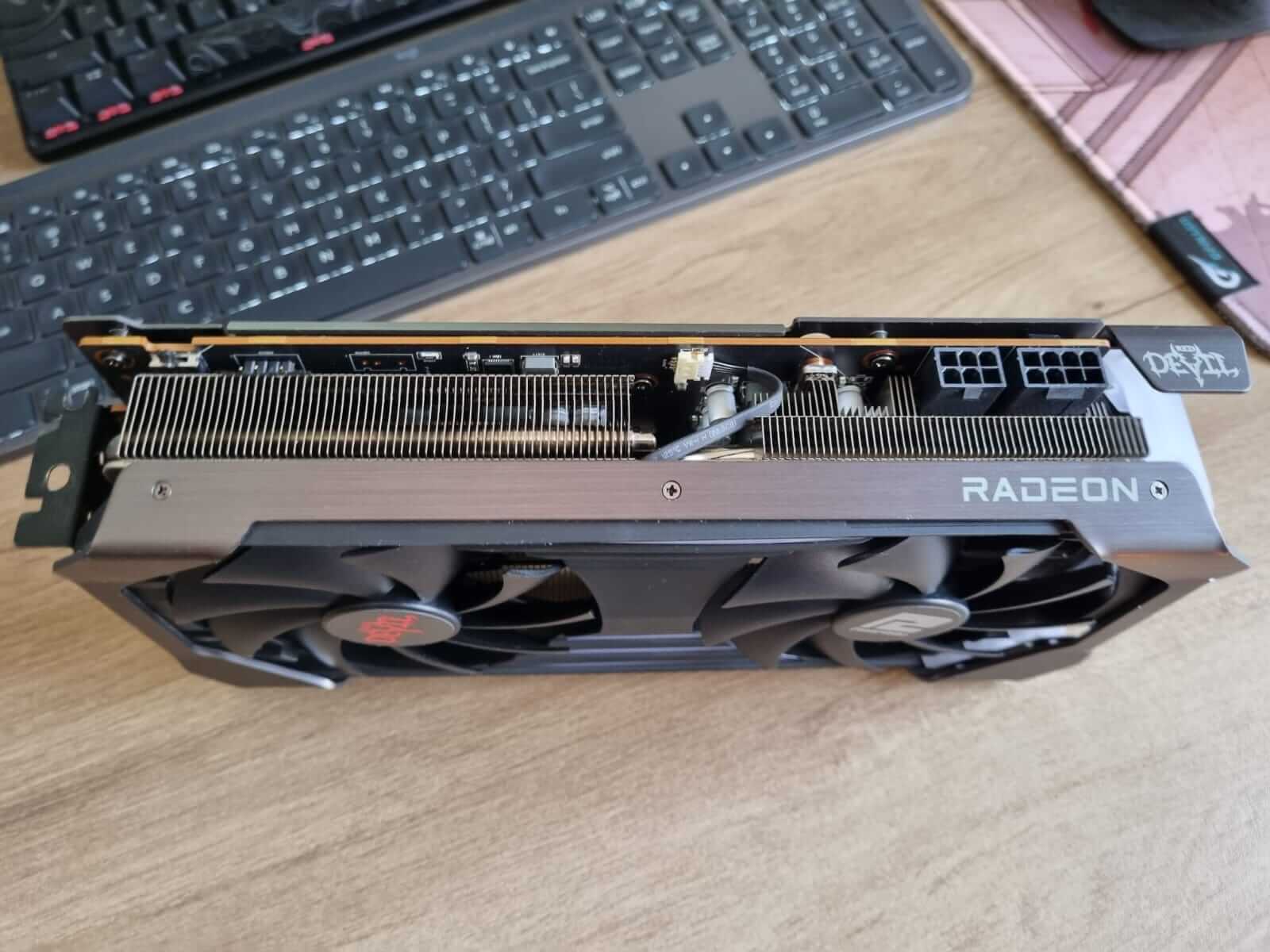 A fama das placas Red Devils, que normalmente estampam e fazem sucesso nos modelos topo de linha, se faz juz aqui na RX 6600 XT. O sistema de duas ventoinhas, e seus heatsinks como um todo, é muito eficiente. Eficiente em manter a placa com excelentes temperaturas sob alto estresse e baixíssimo nível de ruído.