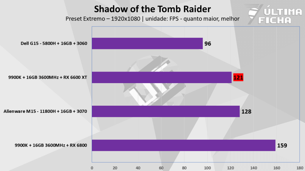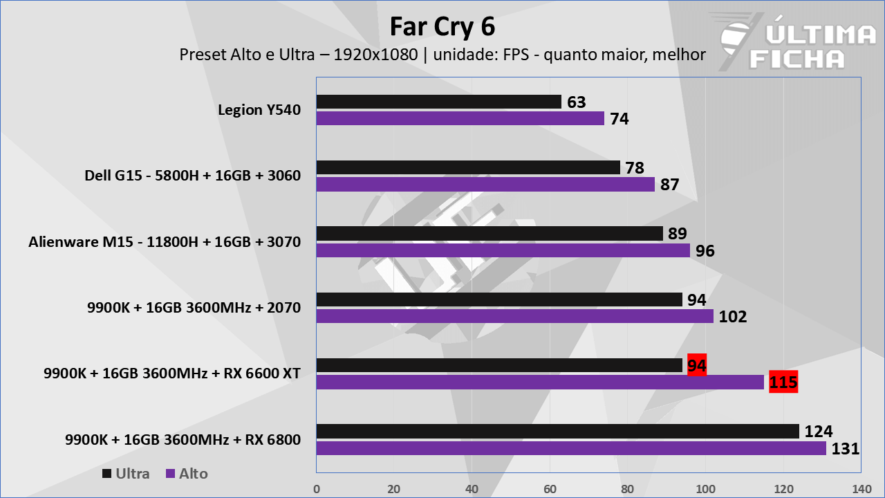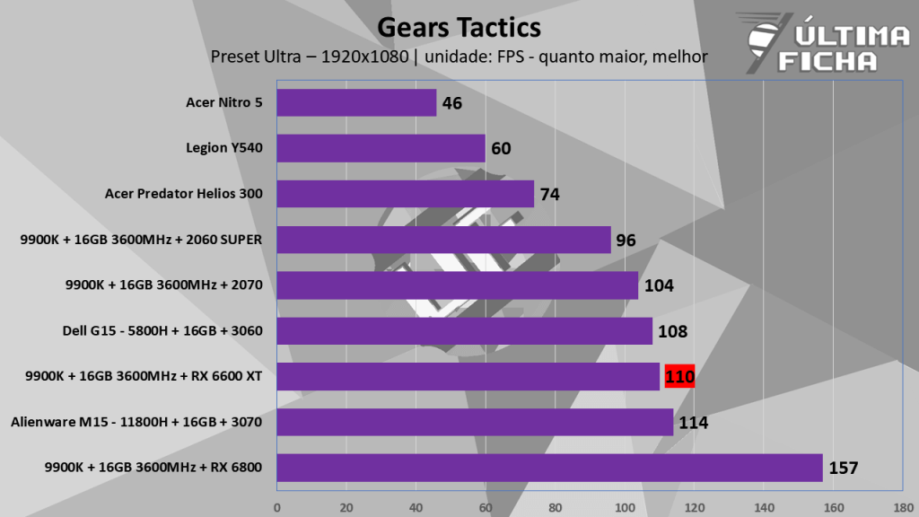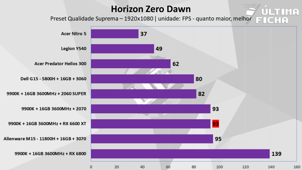 Aproveitamos alguns jogos não tão novos, pois temos algumas outras máquinas com dados guardados, facilitando o comparativo. Você pode conferir todas as máquinas e configurações usadas nestes comparativos clicando aqui, caso queira saber algumas informações além do que vem resumidas nos gráficos.