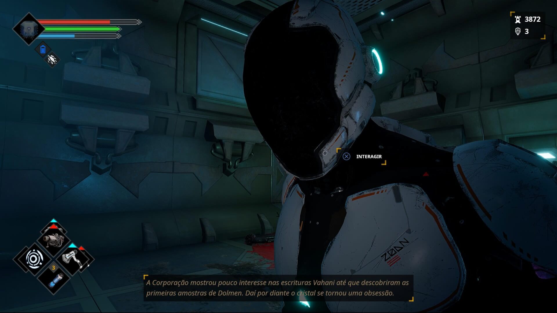 O jogo mescla a forma tradicional de contar histórias com o método trabalhado na franquia Dark Souls. Temos momentos que alguém está nos contando o que ocorreu, os personagens conversam entre si e você consegue ficar bem ambientado sobre a sua missão principal. Entretanto, o jogo tem camadas mais profundas e, consequentemente, você tem que ler conteúdos que estão espalhados pelo game para entender melhor sobre esse universo e tudo que acontecia em Revion Prime e seus trabalhadores.