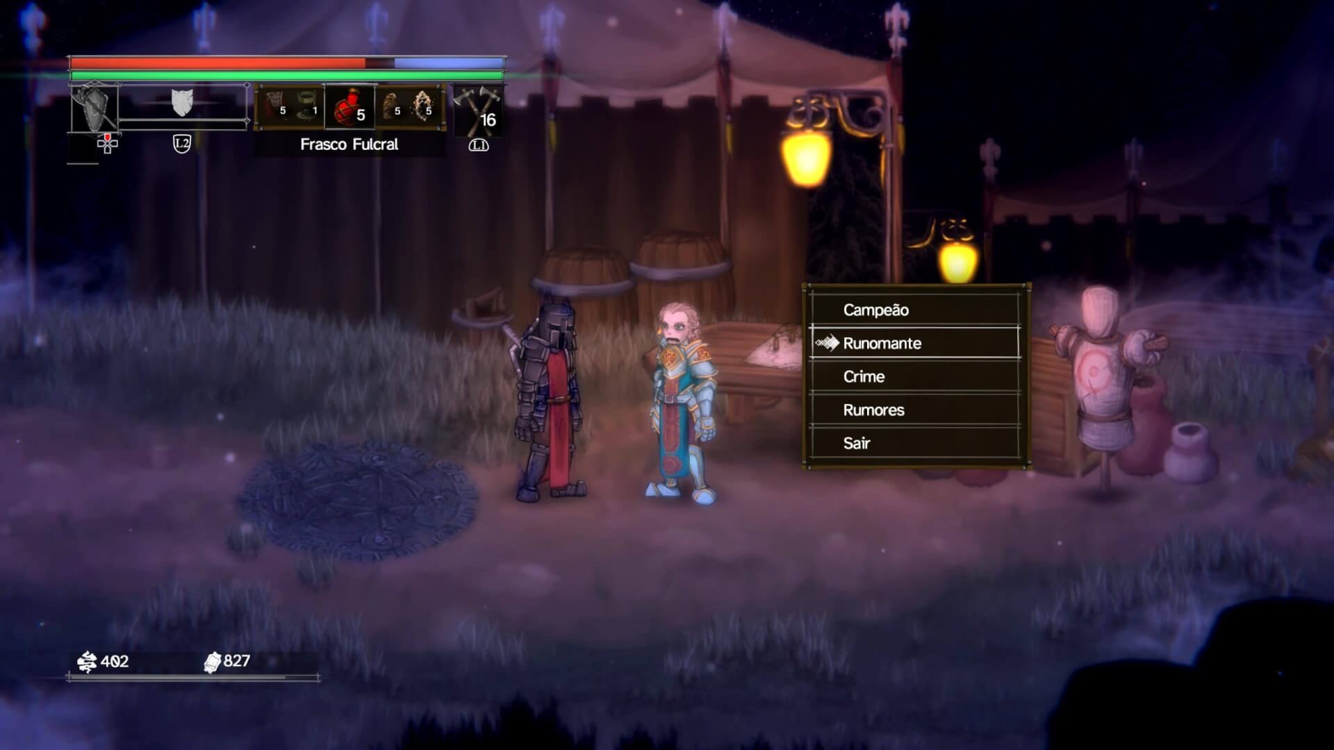 Salt and Sanctuary já foi capaz de impressionar com os gráficos 2D repletos de detalhes e fluidez, mas Salt and Sacrifice leva a franquia para outro nível ao trazer ainda mais detalhes para os cenários, armaduras e personagens. Além de ter uma direção de arte bastante sólida, não vemos nenhum tipo de relaxamento em seus modelos 2D. Tudo é muito bem trabalhado, desde os NPCs até os chefes.