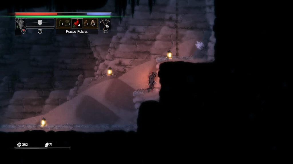 Algo impressionante de Salt and Sacrifice é como ele consegue trazer toda a experiência de um soulslike mesmo ela sendo mesclada com plataformas. Com um ataque fraco, forte, rolagem para esquiva, bloqueio, uso de magia e itens… A jogabilidade tão consagrada está completamente presente. Porém, temos adições como o bom e velho salto para chegar em áreas mais distantes do cenário e acessórios que auxiliam na sua exploração.