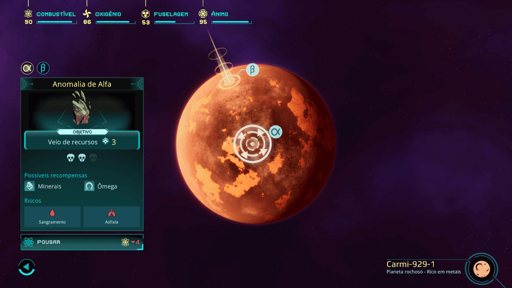 Por fim, é possível dar tarefas para cada membro da tripulação para melhorar o desempenho de alguma exploração específica, coleta de recursos e mais. No geral é tudo bem direto ao ponto e de certa forma simples. O verdadeiro desafio do jogo ficará em sempre ter reservas para conseguir viajar entre planetas.