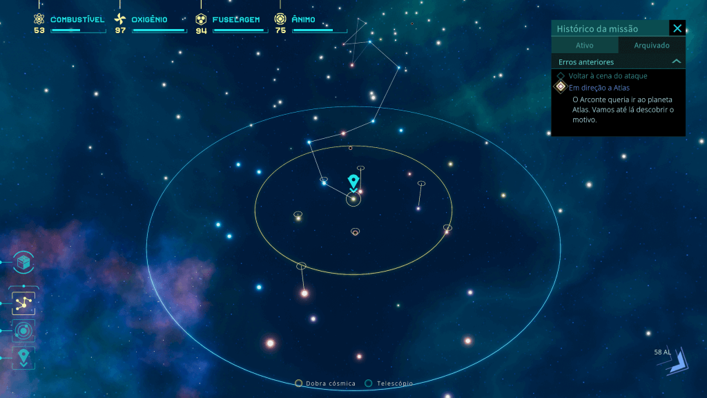 Acredito que nesta análise de Out There: Oceans of Time a parte que irei mais investir tempo, será em sua história e nas suas escolhas ao longo do jogo. Em geral, aqui temos um jogo no estilo Roguelite, onde iremos perder o progresso caso fiquemos sem matéria prima para explorar o universo.