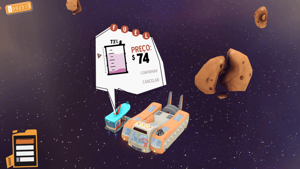E não ache que o caos para somente aqui. Em Spacelines From The Far Out você tem que se preocupar com o que está fora da nave. Ou seja, se prepare para ficar de olho e driblar asteroides, asteroides gigantes e até cometas que são super rápidos – e que tem uma mira melhor que um sniper! E além disso você tem que ficar atento para paradas de interesse como posto de combustível, banheiro e até buscar novos passageiros e aumentar a renda.