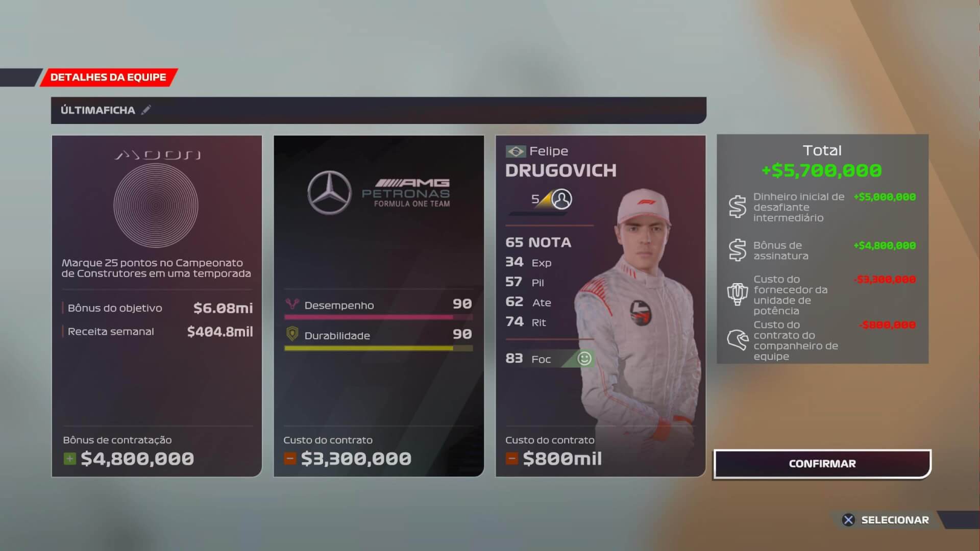 Para quem não sabe ao iniciar o jogo é possível começar dois tipos de modo carreira. Um será criar seu piloto e sentar em uma das já conhecidas equipes de corrida onde irá gerenciar as melhorias de seus carros assim como pilotar durante as corridas e treinos. Já a outra opção bem mais ampla, traz as mesmas opções, assim como a opção de gerenciar a sua equipe, ou seja, você irá gerenciar os dois pilotos, eventos da equipe, design do carro, patrocinador e muito mais.